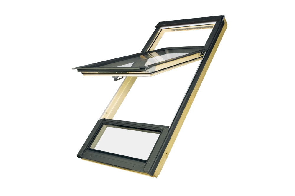 Sunt amplasate in doua canaturi suprapuse care le transforma din ferestre superinalte in ferestre uriaie. Canatul superior este, de fapt, fereastra superinalta (a carei pivotare se face deasupra liniei mediane) iar canatul inferior este o parte fixa. Sunt singurele ferestre de mansarda de pe piata care raspund cerintelor normei DIN 5034-1 (referitoare la luminatul incaperilor) in conditiile montarii pe un acoperis cu panta cuprinsa intre 30˚- 43˚. Fereastra FDY-V inlocuieste necesitatea combinarii pe verticala cu acelasi rezultat: o suprafata vitrata mai mare. in cazul combinatiilor standard distanta intre suprafetele vitrate este de 30 cm, in timp ce in cazul acestor ferestre este doar de 15cm. Manerul de operare montat in partea de jos a ferestrei superioare permite operarea usoara. Manerul asigura si blocarea in doua pozitii de intredeschis. Dotata cu clapeta de aerare V40P cu reglarea automata a debitului de aer. Clapeta de aerare V40P asigura un microclimat sanatos in incapere si economie de energie termica.Ferestrele se rotesc in jurul axei mediane pana la 160° in vederea curatarii geamului exterior.