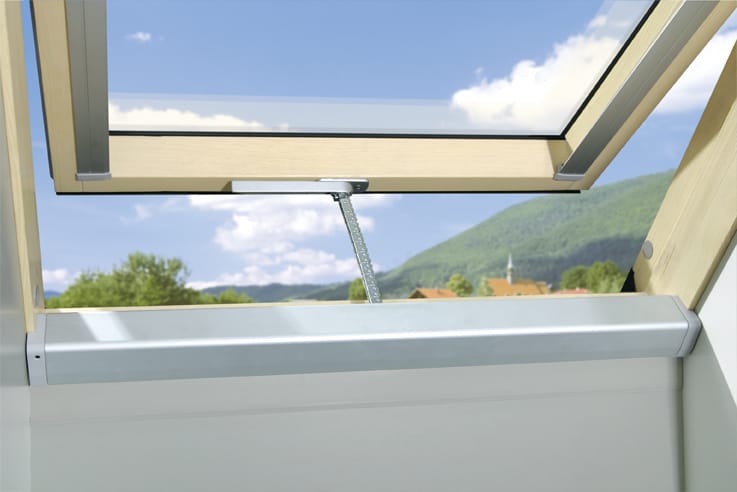 Fereastra de mansarda FAKRO FTP-V U5 WiFi – Ferestre cu articulare mediana, dotate din fabricatie cu motor, transformator si senzor de ploaie pentru a permite operarea de la distanta. Au un sistem electric complet ce permite conectarea simpla si rapida la reteaua de 230 V.