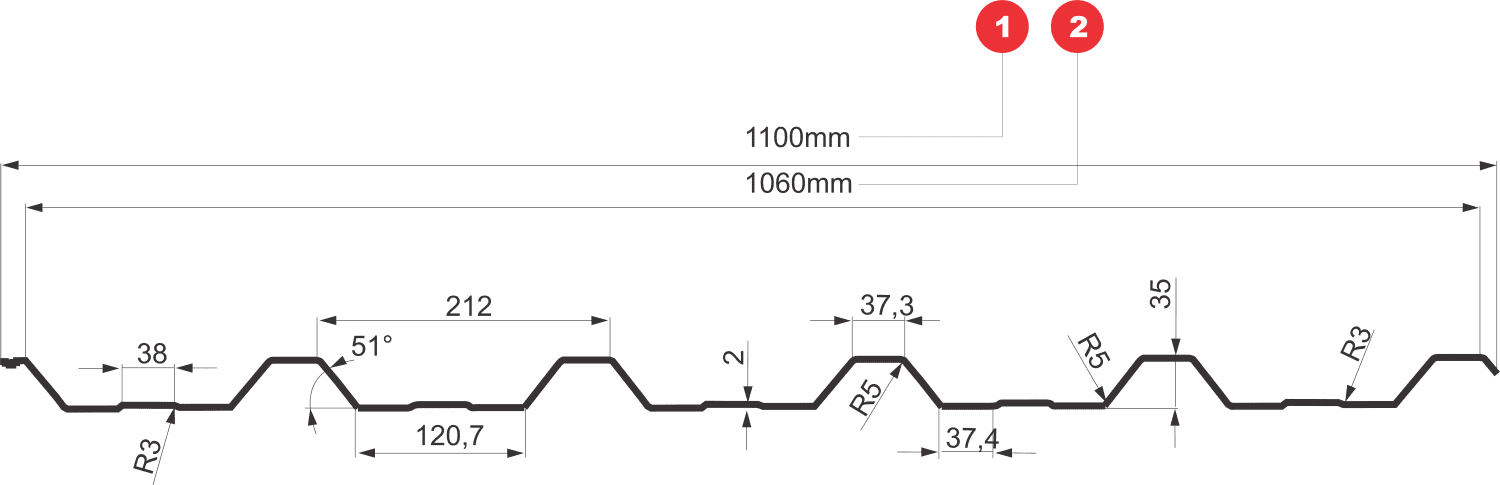 Tabla cutată T35 este produsă din tablă din oțel.Materia primă de calitate superioară permite utilizarea tablei la placarea fațadelor în special a clădirilor comerciale și industriale. Se poate monta și pe acoperiș ca învelitoare. Înălțimea cutei este de 35 mm.